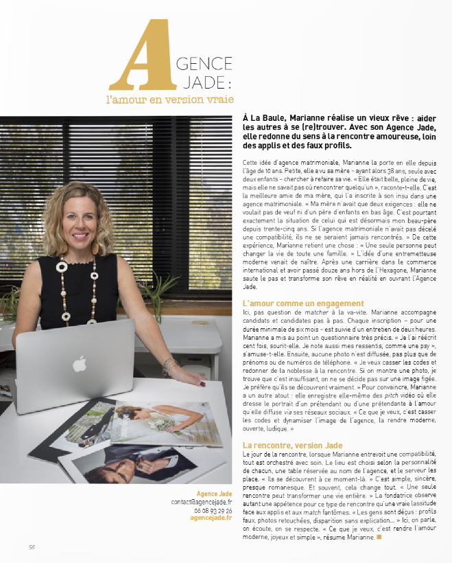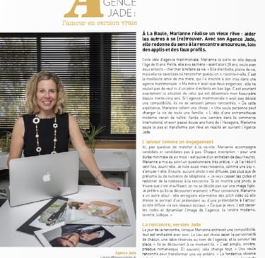 En consultant cette page, vous accédez à une sélection d’articles qui retracent l’histoire, l’actualité et la visibilité médiatique de l’Agence Jade, tout en soulignant son implication locale et son expertise dans le domaine de la rencontre.